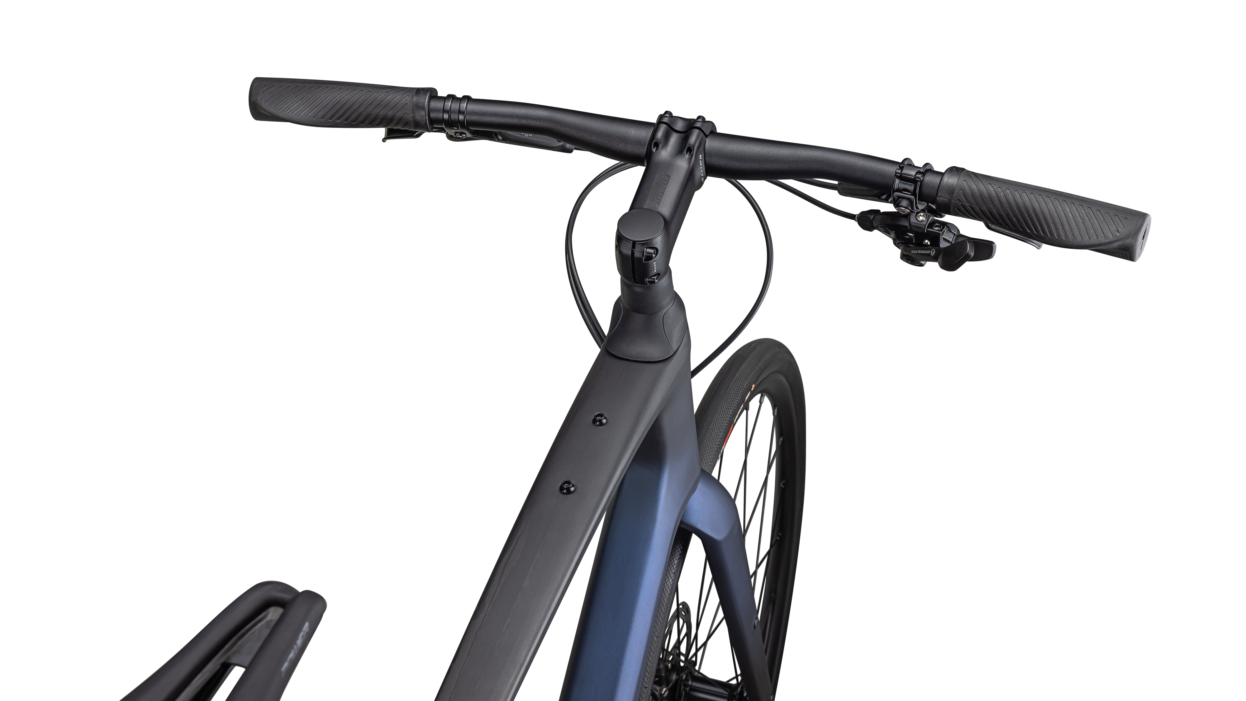 Future Shock 1.5, Specialized’s unique suspension design, is placed inside the headtube to prevent harsh frequencies caused by bumps in the road from reaching the handlebars.